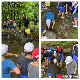 大はしゃぎの中、頑張って捕まえた魚を宿舎の方が焼いてくださいました。