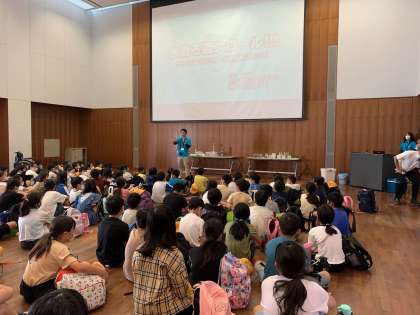 まず、『じょう水ジョー、ろ過ンロール』浄水場のキャラクター「じょう水ジョー」が、浄水の仕組みを楽しい音楽に乗せて、紹介してくれました。