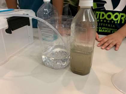 色や匂いが取れて、きれいな水になる様子を体感することができました。