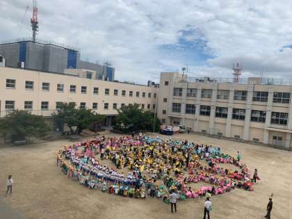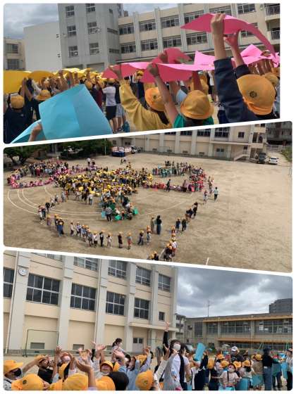 新高小創立80周年を記念して行われました。みんなで、新高小の校章を作りました。上手にできているかはお楽しみです。