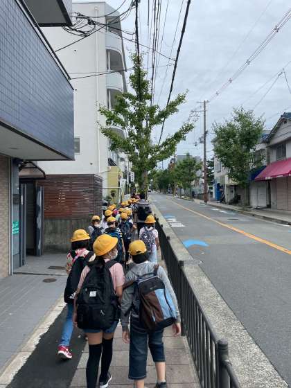 電車の中でのマナーはバッチリ。曽根駅から公園をめざして歩きます。