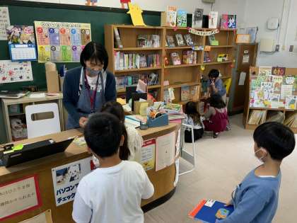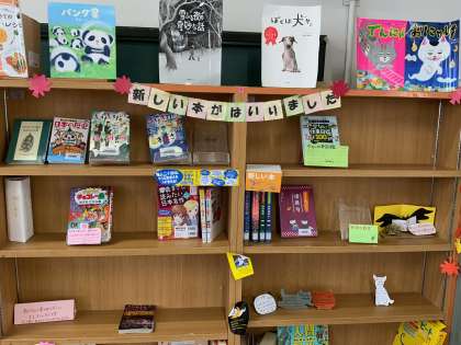 学校司書さんはいつも子どもたちの読書環境を整えてくださっています。子どもたちは図書室が大好きです。図書室には「秋」のコーナー。子どもたちの興味関心にそった読書環境の新高小図書室。司書さんだけでなくボランティアさんにも支えられています。本校自慢の読者環境です。