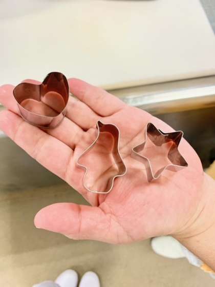 ポークカレーライス(米粉)は、小麦アレルギーのある子どもたちも食べられるように、米粉のカレールウの素を使用しています。豚肉を主材に、じゃがいも、たまねぎ、にんじん、青みにグリンピースを使用しています。今日のラッキーにんじんはハート、星、ペンギンの3種類でした。(写真2枚目)