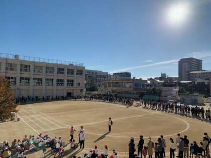 「創立80周年記念 運動会」がいよいよ始まります。お天気にも恵まれ、子どもたちもやる気満々です。順々に運動場に集まってきています。