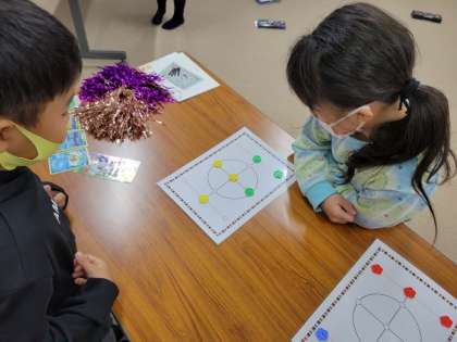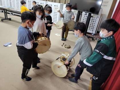 1年生も、ハングルで自分の名前の文字を書いてみたり、楽器を鳴らしたり、ゲームをしたりと、楽しい時間を過ごしました。