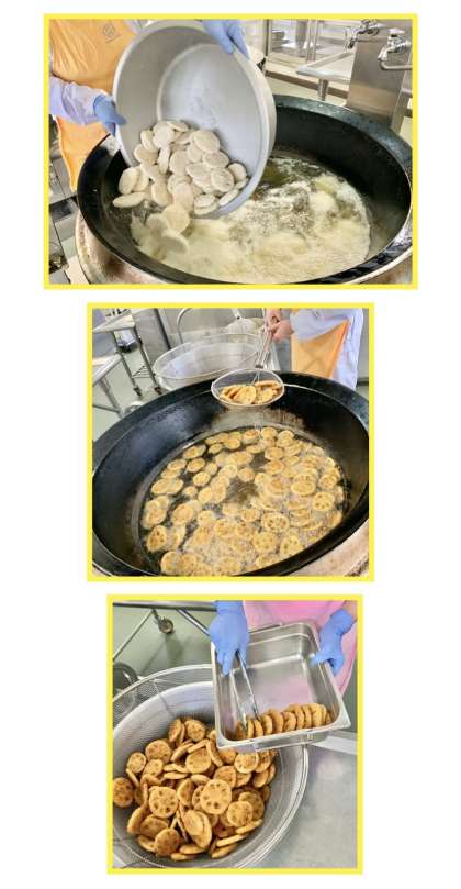 れんこんのフライ大阪ソース味は、れんこんのフライに、ウスターソース、トンカツソースなどを合わせて作ったタレをかけています。(写真6〜8枚目)