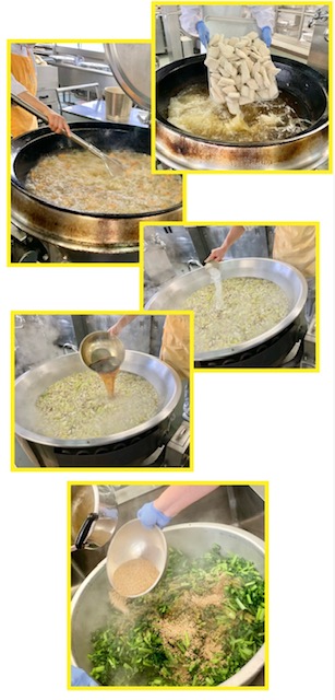 すまし汁は、鶏肉、はくさい、だいこん、しいたけ、青みにみつばを使用しています。(写真4、5枚目)
