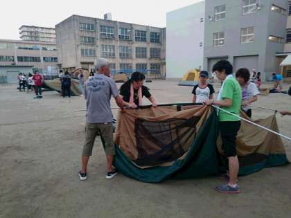 たくさんの方のサポートを受けながら、6年生はテントはりです。