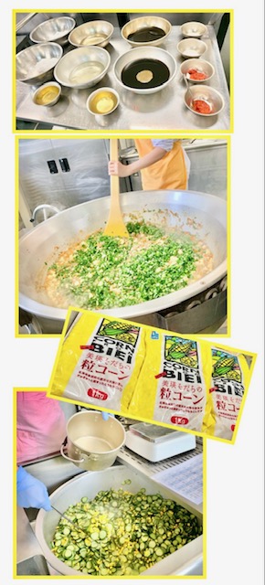 きゅうりとコーンの甘酢あえは、きゅうりとコーンに、砂糖、塩、米酢で作ったタレをかけ、あえています。(写真4、5枚目)