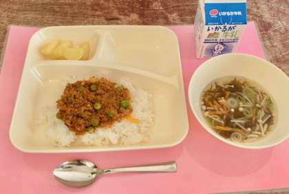 【タコライス、もずくのスープ、焼きじゃが、牛乳】
