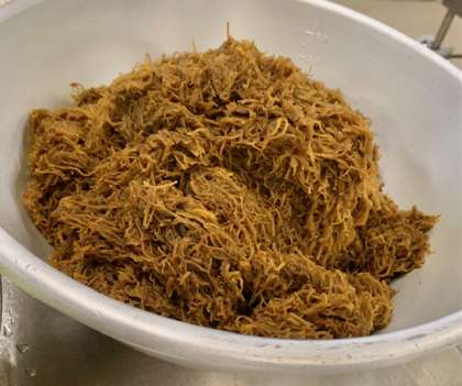 もずくのスープは、沖縄県産のもずく(写真2枚目)、にんじん、白ねぎ、えのきたけを使ったスープです。