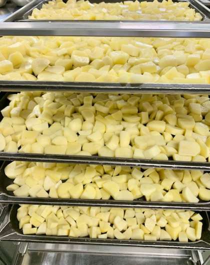 焼きじゃがは、塩と綿実油で下味をつけたじゃがいもを焼き物機で焼いています。(写真3枚目)