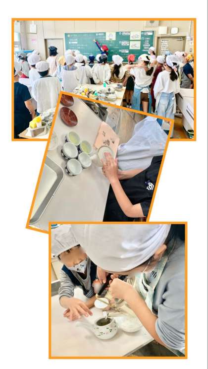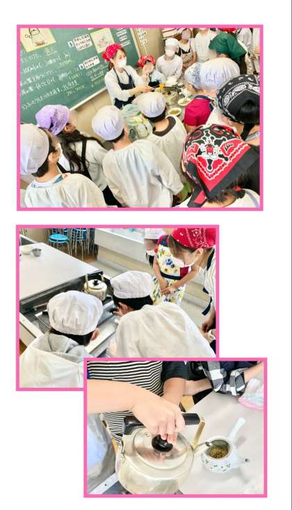 5年生は家庭科で、お茶をいれる調理実習をしました。みんなで協力して、おいしいお茶をいれることができていました。どのクラスも、片付けまできちんと頑張りました。