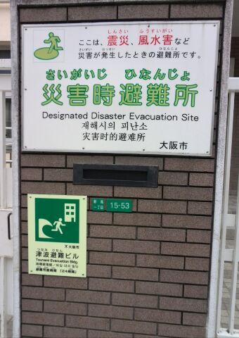 新高小学校は災害時避難所になっています。近くには、神崎川・淀川が流れています。