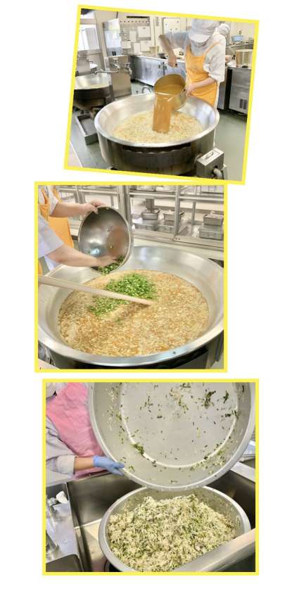 みそ汁は、とうふ、たまねぎ、キャベツ、にんじん、オクラ、えのきたけを使用しています。(写真7、8枚目)