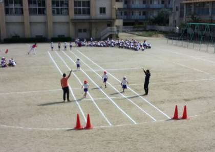 練習の成果をおうちの人に見てもらおうと、1年生ががんばっています。