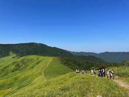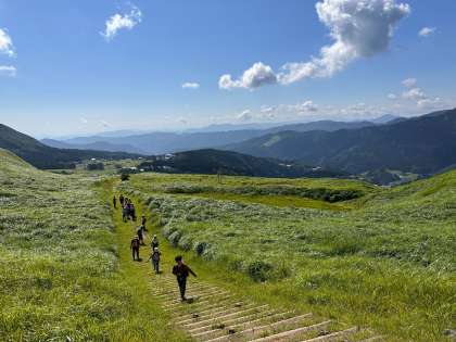 日差しが強く、とても暑い中でしたが、休憩を挟みながら無事に山頂まで登り切ることができました!班で声を掛けあって、助け合いながら頑張っていました。山頂からの景色は最高です!