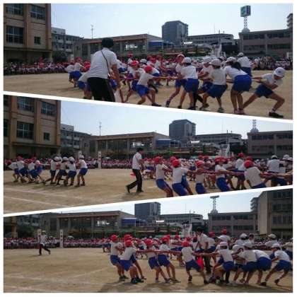 力一杯引きあって行いました。負けたチームも、次のグループの応援に走って頑張りました。