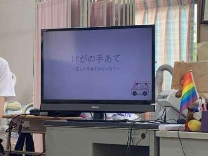 発育二測定では、けがの正しい手当てについてクイズ形式で、学習しました。