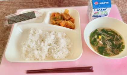 【ごはん、酢豚、中華みそスープ、焼きのり、牛乳】