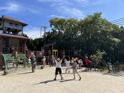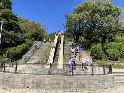 お弁当を食べた後は、長い滑り台や、迷路、大きな遊具で思いっきり遊びました。