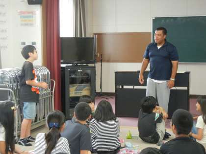 英語のNA(ネイティブ・スピーカー)のアレックス・カパナ先生です。10・12・2月の水曜日と木曜日に来ていただき、子どもたちに英語を教えていただきます。