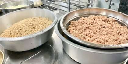 鶏肉のゆず塩焼きは、塩、ゆず果汁で下味をつけた鶏肉にたまねぎを合わせ、焼き物機で焼いています。