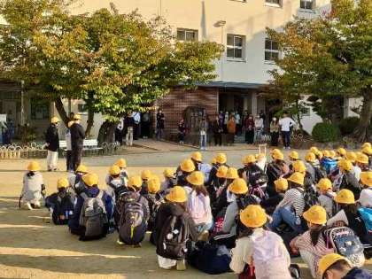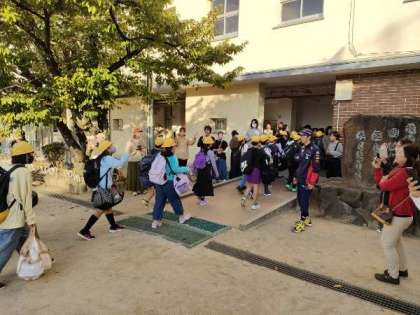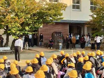 晴れ渡る大空のもと、運動場で出発式を行いました。