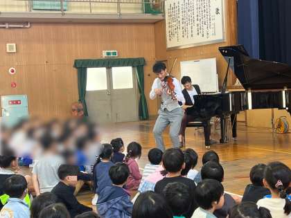 小学生親子を中心に大人気の観客参加型コンサートをされているEverly(エバリー)の松尾賛之さんと松尾悟郎さんが新高小学校に来ていただきました!