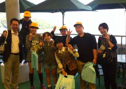 先生たちと記念写真をとっています。