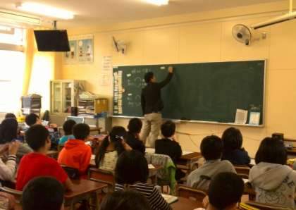 上の画像は、2年生。かけ算の授業です。