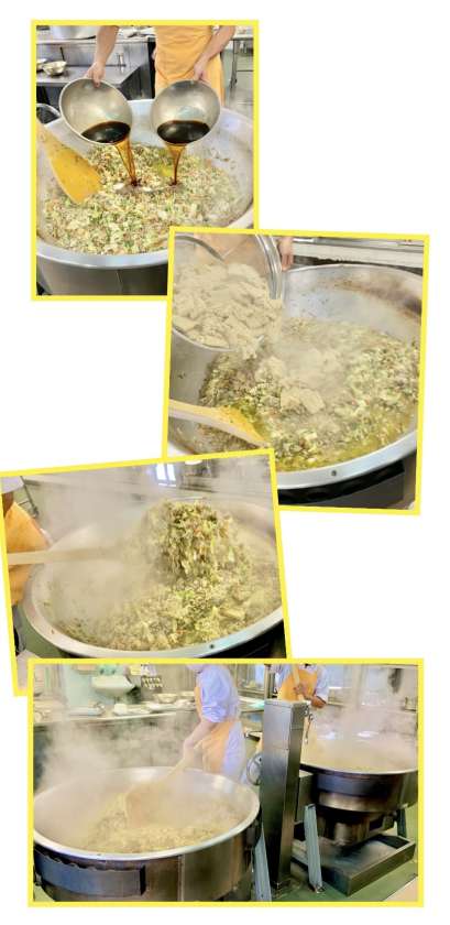和風焼きそばは、豚肉を主材に、塩、こしょう、うすくちしょうゆ、こいくちしょうゆで味つけした焼きそばです。喫食時にかつおぶしをかけていただきます。(写真2〜5枚目)