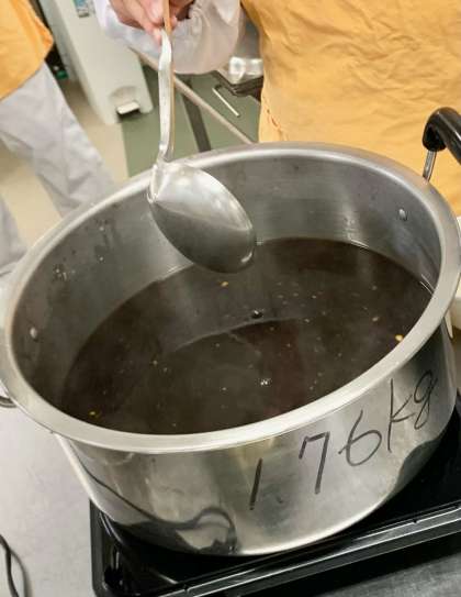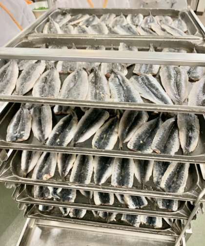 いわしのしょうがじょうゆかけは、料理酒で下味をつけた開きのいわしを焼き物機で焼き、しょうがの風味をきかせたタレをかけています。(写真2、3枚目)