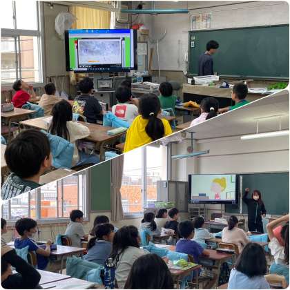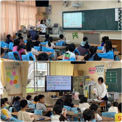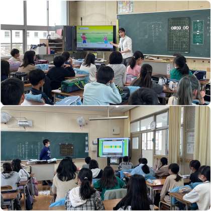 新高小学校では、火曜日と水曜日の朝に英語の短時間学習を行っています。