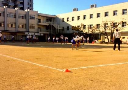 体育科の校内研究授業として、6年生で「フラッグフットボール」を取り入れた授業を実施しました。
