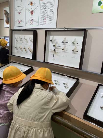 昆虫館では、展示された色々な昆虫達に興味津々で、特に蝶の飛び交う放蝶園は子ども達にも大人気でした!