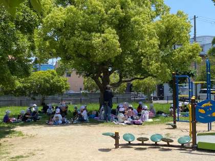 ふれあい緑地公園に到着して、元気になかよく遊んでいます。