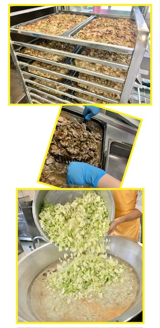豚肉の梅風味焼きは、豚肉に梅肉を使った調味液で下味をつけ、ピーマンを混ぜ合わせ、焼き物機で焼いています。(写真2、3枚目)
