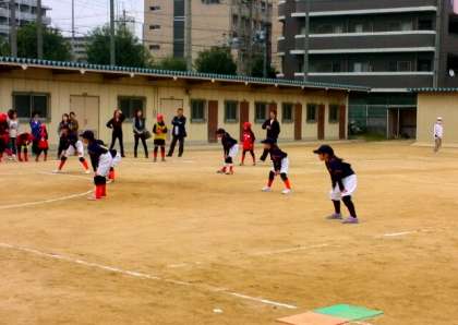 十三中学校下連合子ども会親善キックベースボール新人戦が行われています。