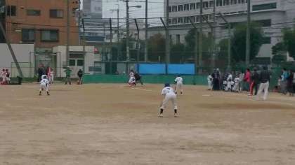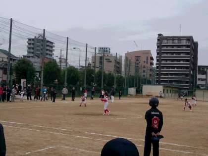 キックベースボールと並行して、十三中学校下子ども会親善ソフトボール新人戦が十三中学校のグランドで行われました。