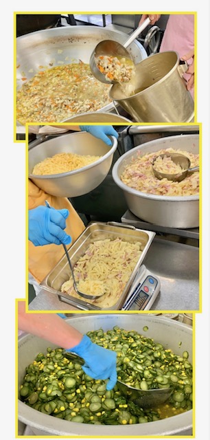 ベーコンとじゃがいものチーズ焼きは、ベーコンとじゃがいもに下味をつけ、チーズを乗せて、焼き物機で焼いています。(写真3枚目)