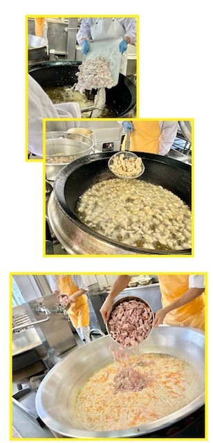 鶏肉のからあげは、鶏肉にしょうが汁、にんにくなどで下味をつけ、でんぷんをまぶして、油であげています。(写真2、3枚目)