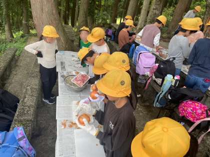 役割分担をして、カレーの下準備や火おこしを頑張っています。美味しいカレーを作るために、みんな真剣です。