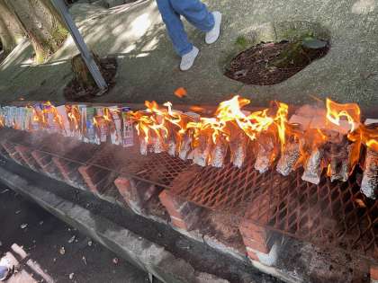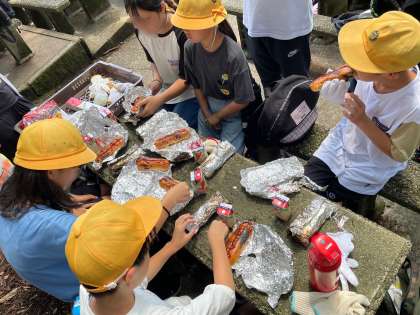 最後の昼食はカートンドッグです。アルミホイルを開けた瞬間「おー!」「美味しそう!」「焦げてしまった」などいろいろなところから声が聞こえて来ました。焼きたてのホットドッグの味に大満足でした!