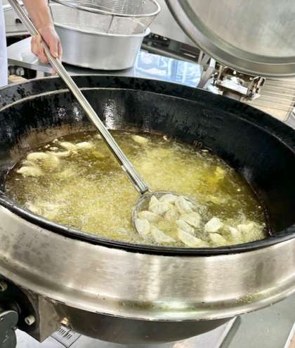 あげギョーザは、油でカリッとあげています。(写真1枚目)