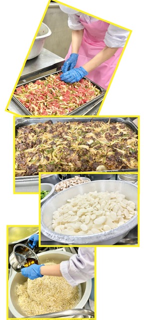 プルコギは、韓国・朝鮮の焼き肉のことです。コチジャンを使用し、少し甘辛い味つけにしています。(写真2、3枚目)