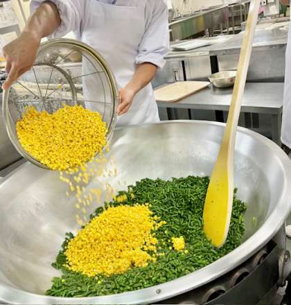 さんどまめとコーンのソテーは、さんどまめ、コーンをいため、塩、こしょうで味つけしたソテーです。(写真3枚目)