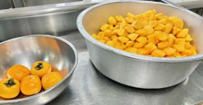 かき(平核無柿)は、和歌山県産で、1人1/4切れです。(写真3枚目)