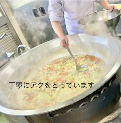 スープ煮は、豚肉を主材に、じゃがいも、たまねぎ、にんじん、しめじ、さんどまめを使用しています。(写真3枚目)