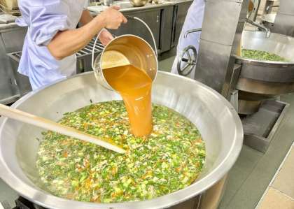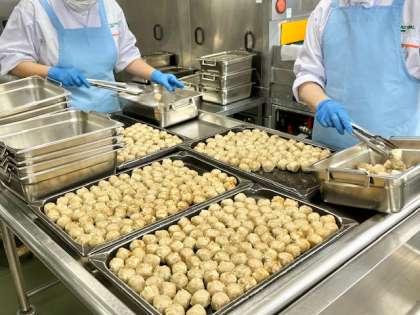 中華みそスープは、鶏肉、チンゲンサイ、もやし、にんじん、コーン、しいたけを使用し、赤みそ、中華スープの素などで味つけしています。(写真3枚目)